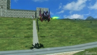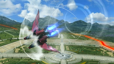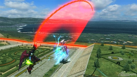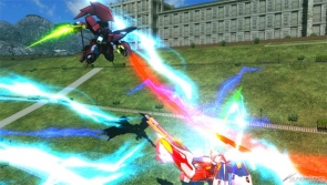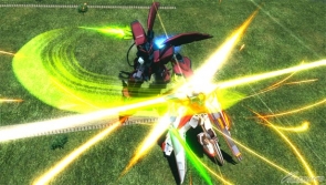 ▲特殊格鬥武裝「特殊移動」是迴旋移動。根據搖桿輸入方向不同,會改變移動方向,搖桿往右就往右・往左就往左,不操作搖桿則是往上,搖感向前則是往前方移動。在移動中按下格鬥劍會發動橫向的斬擊。