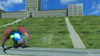 ▲副射擊「電熱鞭」會依據搖桿輸入方向不同改變攻擊模式。不輸入方向可以把敵人往上方打,搖桿向前則是會飛起來,從上往下打。搖桿往旁邊則是會從左至右、右至左發動大範圍的橫斬。