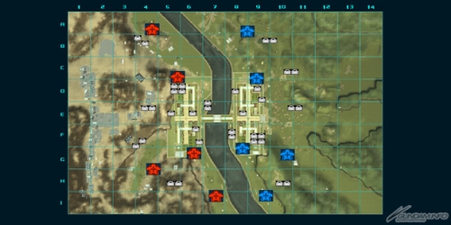 要移動到對岸,只能經過城鎮中央唯一的橋樑強行突破,但沿著河川設有防禦用的固定砲台,選擇進攻路線相當重要。