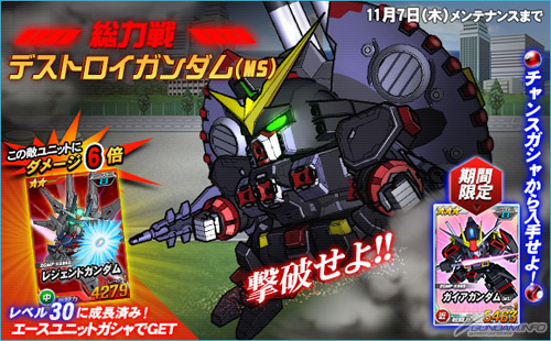 打倒「毀滅哥達魯(MS)」時可以抽機會轉蛋,除了有機會獲得「大地哥達魯(MS)」之外,在王牌機體轉蛋中還追加可以對「毀滅哥達魯(MS)」發揮6倍攻擊力的「傳說高達」。
