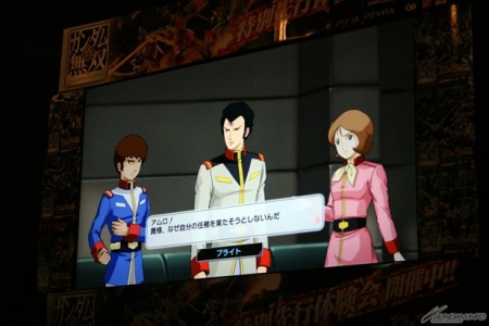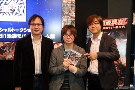 首先邀請到本作的製作人Tecmo Koei Games的鯉沼以及NAMCO BANDAI GAMES的後藤、小美野登台,進行特別座談會。來賓們也在活動中熱情地訴說以前作「高達無雙3」為基礎的本作,堪稱是系列集大成的作品。