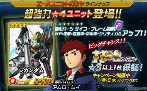 NAMCO BANDAI ONLINE現正於「Yahoo!遊戲」提供中的免基本費網頁遊戲「SD GUNDAM OPERATIONS」,在本日1月1日(二)在王牌機體轉蛋中追加了「★4 ν高達」。