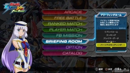 ▲自由對戰的設定畫面。各種設定畫面中,導航員都會登場。比起大型機台版,登場的時間大幅的增加了。畫面高達SEED「米蕾莉亞・哈烏」。