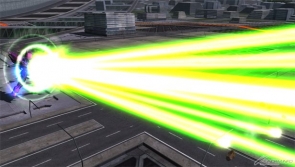 ▲對應左右按鍵輸入方向進行MEGA粒子砲掃射的集氣射擊,由於攻撃範圍相當廣泛,可以拿來當作強力的自衛手段。