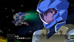 機體名:00強化模組(粒子儲藏槽型)/駕駛員名:刹那・F・塞耶/武器名:GN劍III