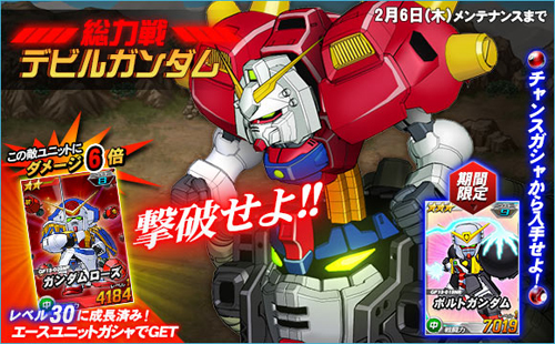 BANDAI NAMCO ONLINE在「Yahoo!遊戲」上提供中的免基本費網頁遊戲「SD GUNDAM OPERATIONS」從今天1月23日(四)起,「魔鬼哥達魯」在總力戰中登場。且在限定期間內追加「總力戰集氣攻擊機能」。