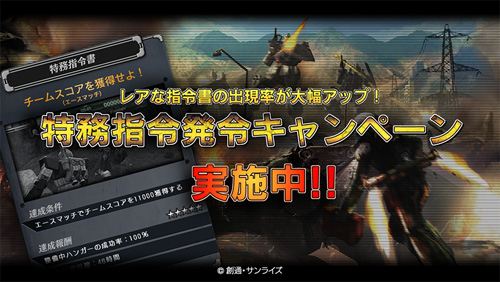 只要裝備「特務指令書」出擊,自軍的全體玩家都會獲邀進行「特別任務」,只要達成任務內容,無關勝敗都可以獲得特別報酬。指令書會在出擊時,從裝備的玩家當中隨機選出1個來,LV越高的指令書,任務就會越難;等級越高的指令書,報酬也會越豪華。