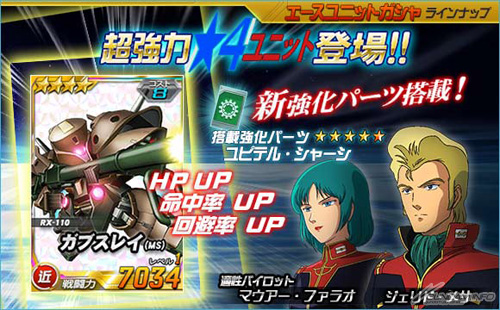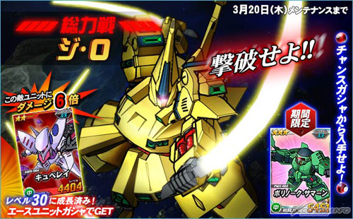 此外,除了「THE・O」從今天起在總力戰中登場之外,王牌機體轉蛋中追加「★4 葛士尼(MS)」;而「高達鬥技場」及「獲得PP上升活動」也開始了。