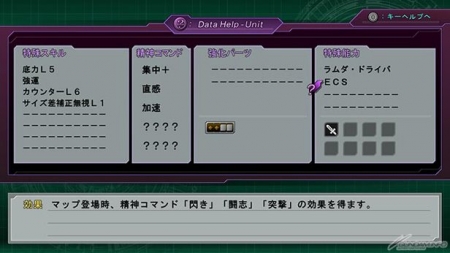 氣力在130以上的時候,除了會讓駕駛的機體獲得「空」的移動方式以外,所有武器的「空」地形適性會變成A、移動力+1。 |
