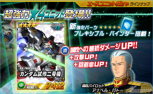 王牌機體轉蛋中新追加的「★4 高達試作二號機」,是搭載了強化零件「多用途莢艙」的強力機體。