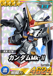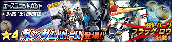 本日的更新中王牌機體轉蛋追加了「★4 高達Mk-II」。高達Mk-II是搭載了強化零件「FLAG・LOW」的強力機體,請務必要入手。