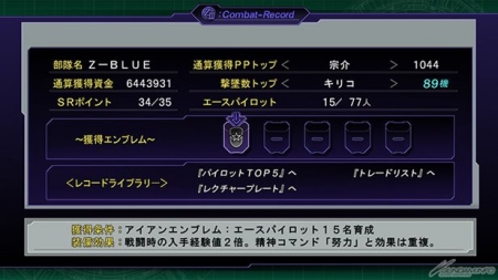 「戰鬥紀錄」是從PSP「第2次超級機器人大戰Z 再世篇」的「總和結果」中更加進化的個人資料系統。