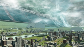 『機動戰士高達0080 口袋中的戰爭』中展開戰鬥的舞台——SIDE 6的中立殖民地。地圖中央下方呈直線延展的「殖民地之河」以及架在河上的橋、設置在斜面的綠地等的自然地形很有變化。