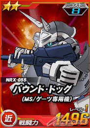 ※「彈跳犬(MS/基捷專用機)」使用同一機體進行強化合成,提高強化零件的等級,能夠將對「精神感應型高達Mk-II」的攻擊力倍率提高到「100%」。
