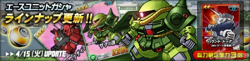 此外從今天起在王牌機體轉蛋中,追加了「★3 渣古II改」、「★3 力奇‧戴亞斯(紅)」,這部分也請不要忘記確認。