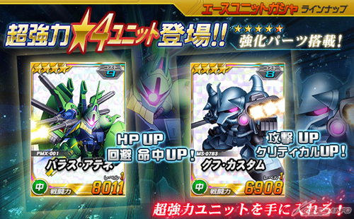 王牌機體轉蛋中新追加「★4帕拉斯‧雅典娜」、「★4 老虎特裝型」2台機體,都是搭載強化零件的強力機體。