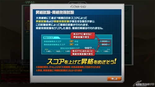 新的階級系統會根據最近7次大規模戰時所獲得的分數,發生「升級考試」或是「降級免除考試」。而伴隨這次的變更,指揮官參戰時的階級將不會變動。