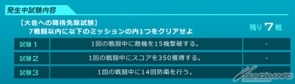 考試内容可以從「駕駛員卡片」上作確認,考試的課題若能在7戰以內達成,就可以昇級或是避免降級。