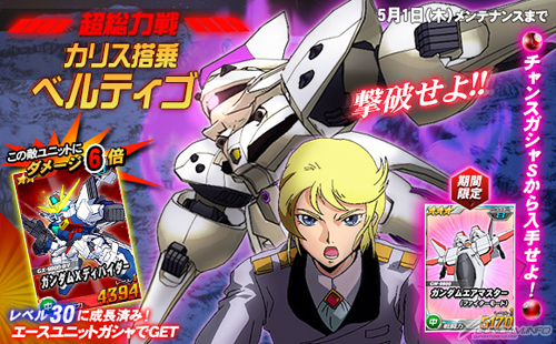 到5月1日(四)止的限定期間內,「卡利斯駕駛的貝爾迪哥」會在超總力戰中登場。期間內進行任務的時候,有機會遭遇「卡利斯駕駛的貝爾迪哥」。