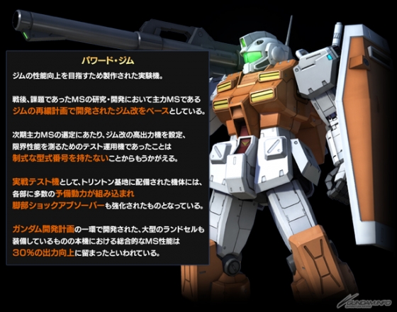 「力量型吉姆」是以提升吉姆性能為目標而製作的實驗機,配備在特林頓基地的實測機,除了在各部位配置了許多的預備動力以外,腳部的避震器也經過了強化。