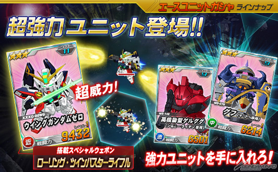 此外,「★3 飛翼高達零式」、「★3 老虎(馬克貝専用)」、「★3 高機動型格魯古古(強尼萊汀専用)」今天起在王牌機體轉蛋中登場。「★3飛翼高達零式」是搭載了特別武器「雙管破壞來福槍」的強力機體,請務必入手。