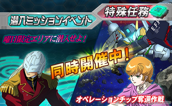 此外,除了王牌機體轉蛋中追加「★3 飛翼高達零式」、白金駕駛員轉蛋中追加了「★3 希羅・尤」之外,特殊任務「OP晶片奪還作戰」和「潛入任務活動」等5個活動也同時地開跑了。