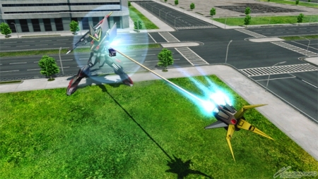 ▲特殊格鬥會呼叫渣古頭Ζ高達邊迴旋邊攻擊。搖桿向左輸入會向左方迴旋,好好運用來擋住敵機的退路吧。