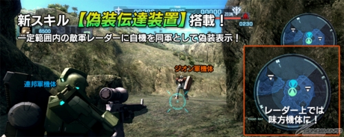 上述2台機體擁有新技能「偽裝傳達裝置」,這是可以在一定範圍內,讓敵軍雷達顯示自機為友軍的偽裝機能。
