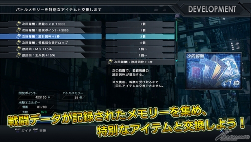 下次戰鬥中、戰鬥報酬的開發點數增加+3,000する。 |