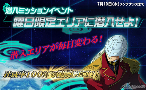 從今天起到7月10日(四)止的限定期間內,將舉辦「潛入任務活動」。在這個活動中會因星期幾和難度的變化,而有機會獲得帶有特定強化零件的機體卡片。請一定要來挑戰戰看,獲得任務報酬。