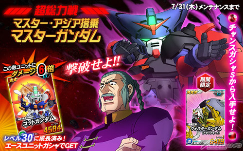 NAMCO BANDAI GAMES在「Yahoo!遊戲」上提供中的免基本費網頁遊戲「SD GUNDAM OPERATIONS」,自7月14日(四)起展開的超總力戰中,「亞洲天王搭乘的天王高達」將會登場。