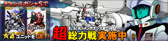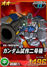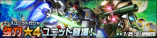 「★4 高達試作二號機」、「★4 葛士尼(MS)」、「★3砲擊型衝擊高達」在王牌機體轉蛋登場。「★4 高達試作二號機」是搭載了強化零件「可動式推進器」的強力機體,請務必去看看。