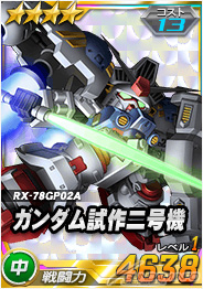 ※「★2高達試作二號機」使用同機體進行強化合成、提高強化零件等級後,對「浦木宏駕駛的高達試作三號機石斛蘭」的攻擊力倍率將可以提高到「100%」。