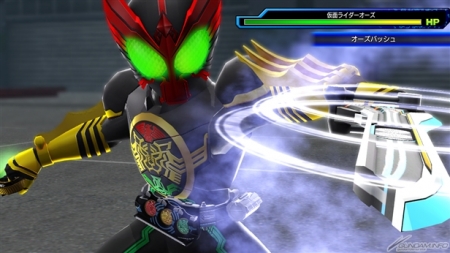 隨著渡部秀熱血的吼聲,使用3枚普通代幣從騎士大劍Medajalibur放出「OOO Bash」,有著將敵人一刀兩斷的威力!