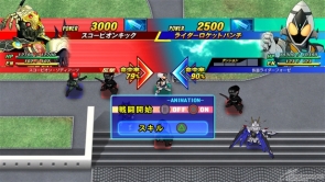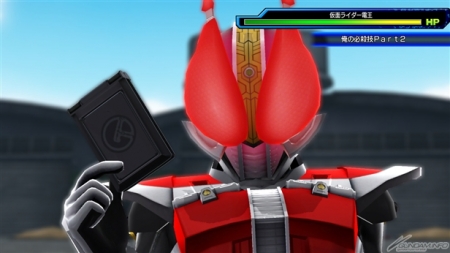 DenGasher劍模式中,使用遠距離控制的方式操控分離的靈氣劍,向敵人發動斬擊的電王劍模式「老子的必殺技Part2」。