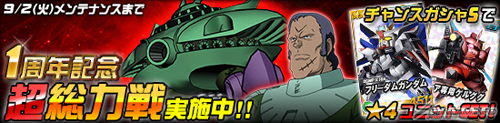 好評舉辦中的「1週年紀念活動」,這次追加了「超總力戰機會轉蛋次數雙倍大放送」和「擊破敵人獲得GP增量活動」。