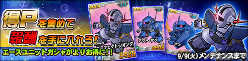 除此之外,王牌機體轉蛋也追加了「★4 自護號」等機體,白金駕駛員轉蛋中則追加「★3 德茲爾・薩比」。而好評舉辦中的「1周年紀念活動」也更新了內容,「優惠點數活動」也同時舉辦中。