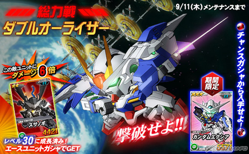 打倒「00強化模組」就可以抽機會轉蛋,除了有機會獲得「★3 高達艾斯亞」外,王牌機體轉蛋中還追加了「★2 須佐之男」,這台機體對上「00強化模組」可以發揮6倍的攻擊力。