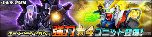 而在王牌機體轉蛋中,則新增了「★4 閃光高達」、「★4 密沙羅(MS)」、「★3 金剛石高達」等機體。「★4 閃光高達」裝備了強化零件「Emotion Line」,「★4密沙羅(MS)」則裝備了強化零件「木星骨架」,兩台都是強力機體,千萬別忘了來確認一下內容喔!