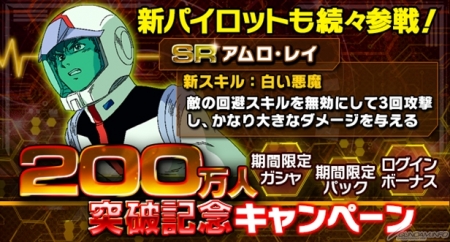 活動中將會販售確定是Rare以上的「下載突破200萬人駕駛員轉蛋」,具有新技能的「SR 阿姆羅・雷」等新駕駛員也會陸續登場。