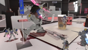 本作中除了有重現原作舞台的關卡外,也有許多遊戲原創的場景模型關卡登場。這次公開的「GUNDAM Café關卡」中,重現大家都很熟悉的秋原店內部,可以來打一場在桌子上橫衝直撞的高達模型戰鬥。活用高低差在這個小小世界裡存活下來吧!