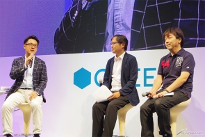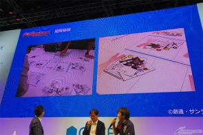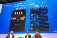 GREE攤位内的特設舞台,這次邀請到來自BANDAI NAMCO GAMES、負責本作開發的後藤能孝,以及BANDAI NAMCO ONLINE的近藤貴浩,還有GREE的屋島新平登台。