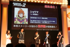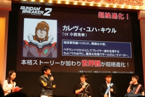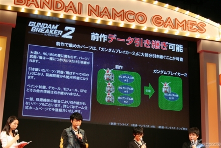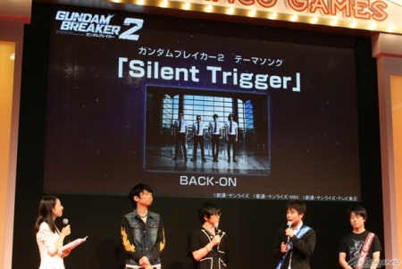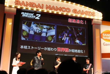 首先上映了「高達破壞者2」的最新PV,本作的主題曲是由「BACK-ON」主唱的「Silent Trigger」,並發表本作中實際可操縱的高達模型有100架以上。此外,也公開這次的遊戲中首次有正式的劇情在,而在故事當中出現的原創角色則是由本次活動的來賓小西和阿部所飾演。