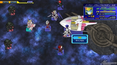 ▲攻略關卡時,將角色移動到諾賓・諾瓦上就會出現「返回母艦」的選項。返回母艦的角色在經過1回合後,HP/EN會完全回復,讓消耗甚大角色在被擊破前就先退回來吧。