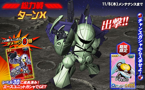 打倒「Turn-X高達」就可以抽機會轉蛋,除了有機會獲得「★3 馬希羅」等機體外,王牌機體轉蛋中還追加了「★2 銀色斯摩」,這台機體對上「Turn-X高達」可以發揮6倍的攻擊力。