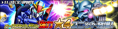 除此之外,王牌機體轉蛋也追加了「★4 Ζ高達」和「★4 老虎特裝型」等機體,而「小隊壓制戰 宇宙戰」等3個活動也同時舉辦中。