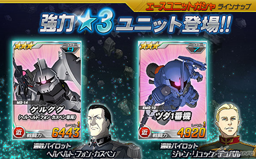 而今天起在王牌機體轉蛋中,新增了「★3 格魯古古(赫伯特•馮•卡斯本専用)」、「★3 積達1號機」等機體,這兩台都是相當強力的機體,一定要拿到手喔!