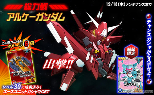 打倒「阿皆以高達」就可以抽機會轉蛋,除了有機會獲得「★3 積達2號機」等機體外,王牌機體轉蛋中還追加了「★2 高達艾里昂斯GNHW/M(MA)」,這台機體對上「阿皆以高達」可以發揮6倍的攻擊力。