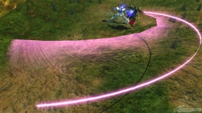 ▲特殊射擊武器是會向對手快速靠近的「特殊移動」。依照搖桿輸入的動作軌道會產生變化,搖桿不動或是搖桿向便會向對手直直前進、搖桿往橫移移動則是會則是斜向移動、搖桿往後則會往自機後方移動。