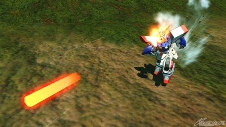 ▲發射1發超級火箭砲的高達X形態副射擊。命中後可以擊倒對手喔。